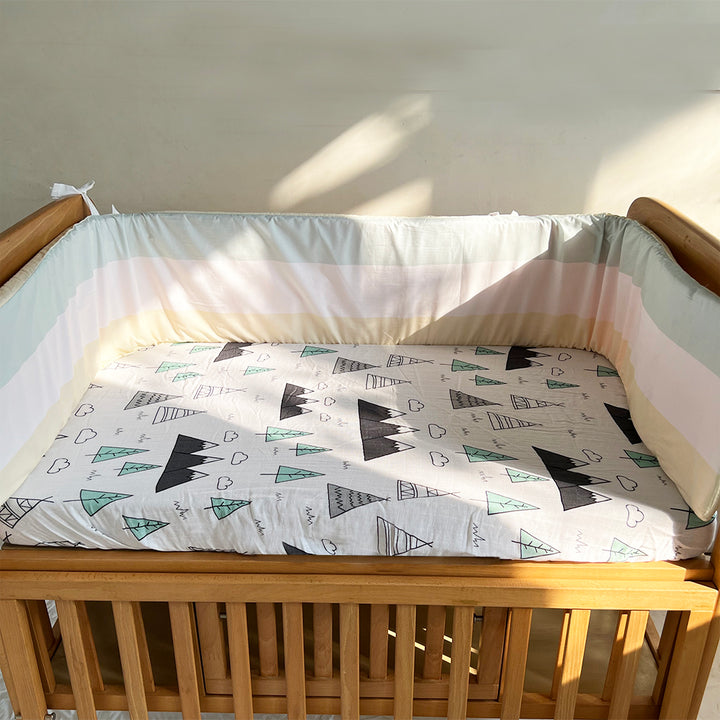 Baby Cot Bumper with Removable Outer Cover, Mint & Yellow