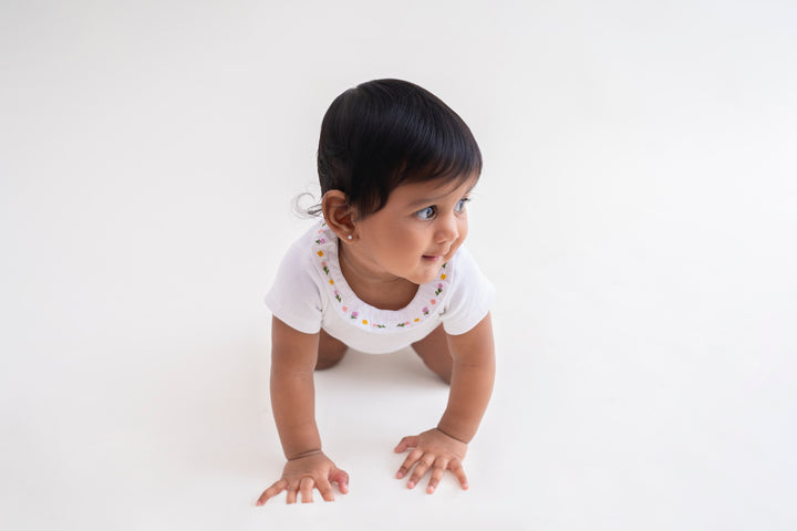 Original price Rs. 1,090.00 - Original price Rs. 1,090.00Original price Rs. 1,090.00Rs. 1,090.00Rs. 1,090.00 - Rs. 1,090.00Current price Rs. 1,090.00Let them Bloom in organic cotton! Highlights Description Fabric & Care 100% GOTs certified Organic CottonGender neutralShort SleevesEmbroid...