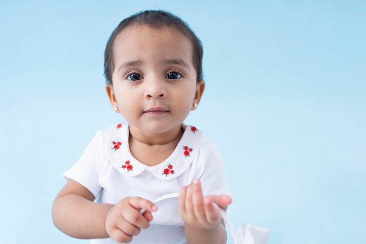 Original price Rs. 1,090.00 - Original price Rs. 1,090.00Original price Rs. 1,090.00Rs. 1,090.00Rs. 1,090.00 - Rs. 1,090.00Current price Rs. 1,090.00Let them Bloom in organic cotton! Highlights Description Fabric & Care 100% GOTs certified Organic CottonGender neutralShort SleevesEmbroid...