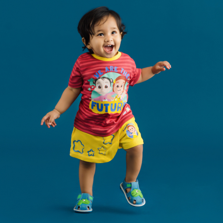 Original price Rs. 729.00Original price Rs. 729.00 - Original price Rs. 729.00Original price Rs. 729.00Current price Rs. 699.00Rs. 699.00 - Rs. 699.00Current price Rs. 699.00Designed Consciously for Play & Comfort Description Fabric FAQs Let your little one twirl into fun with this official CoComelon T-sh...
