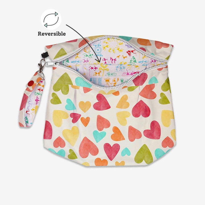 Reversible Waterproof Baby Essentials Bag - Baby Hearts and White Warli