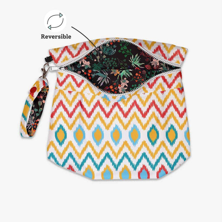Reversible Waterproof Baby Essentials Bag - Ikat Chevron and Shruberry